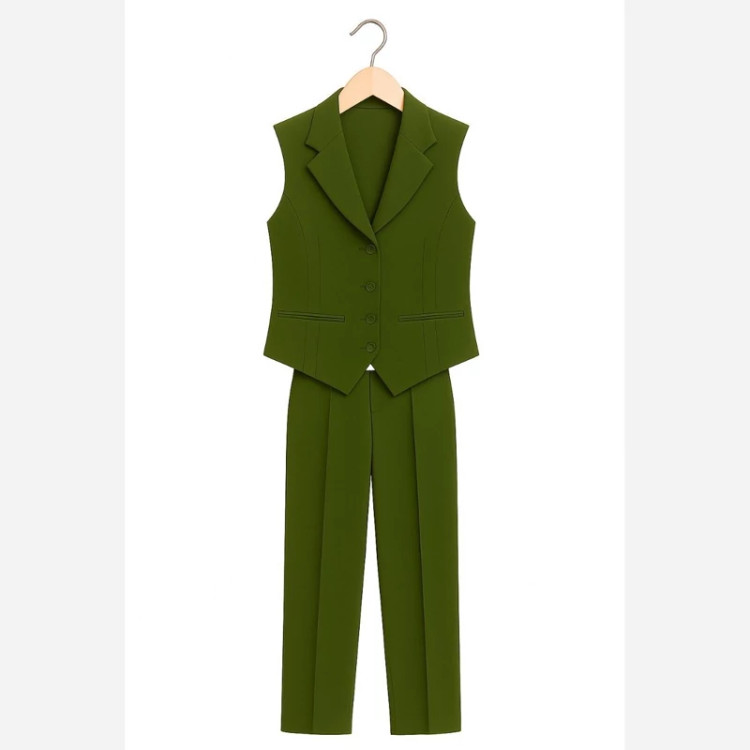 جلیقه جنس شانل قد 62 + شلوار راسته کرپ مازراتی قد 90
